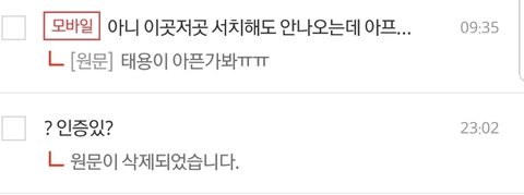 (욕박아서 글 짤렸나본데 대충 새벽 5시부터 현실에는 영향못끼치고 인터넷 사람들 괴로워하는거 보면서 쾌감 느끼는 쓰레기 너는 평생 진학취업길 막히고 3대가 유병장수하라는 쌍욕)
