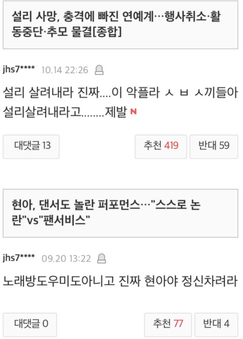 피폐해진 것 같음.. 그리고 그 중심엔 이렇다 저렇다 모여서 싸불하는 악플러들이 있고