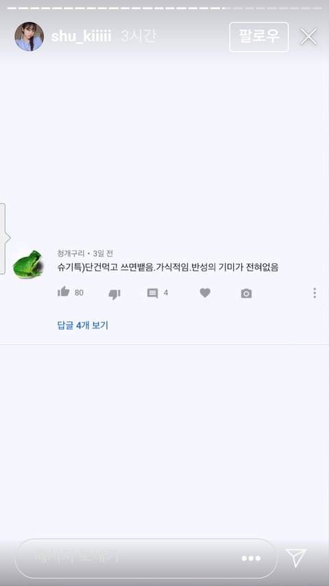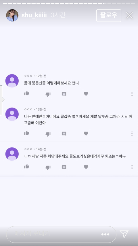 악플로 사람 죽은지 바로 어제인데 판녀들 슈기한테 악플 달아버리네ㅋㅋㅋㅋ
