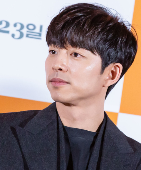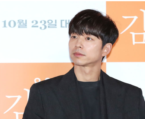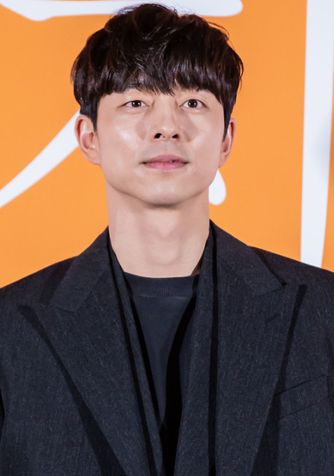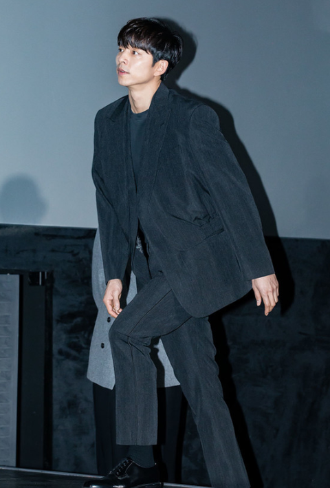 덮머리와 블랙슈트를 입고 등장한 공유.