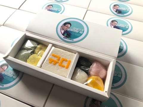 가운데 백설기에 '규디'라고 쓴 거 귀엽다 ㅋㅋㅋ