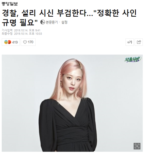 경찰, 설리 시신 부검한다…"