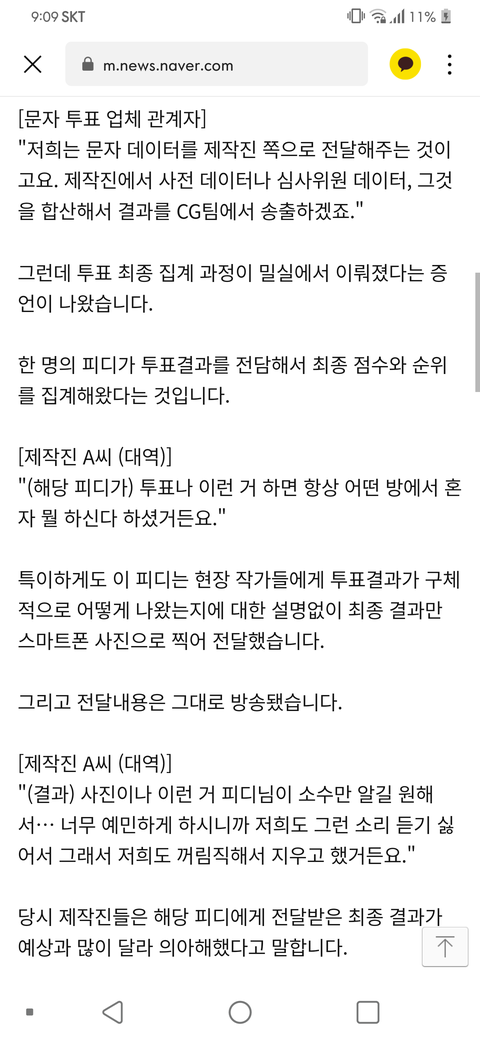 문자 집계업체한테 받은 결과를 안준영이 방에서 혼자