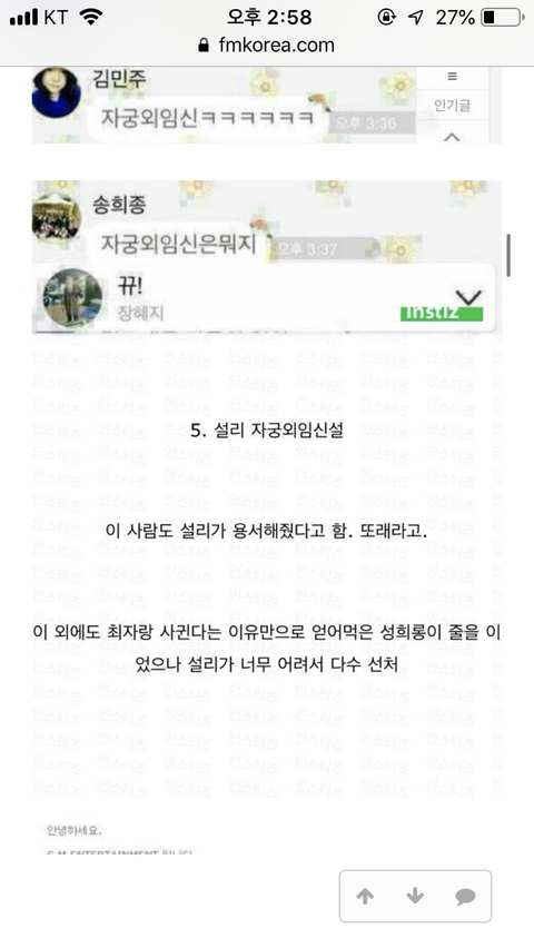ㅇㅈ 예전에 설리 20살땐가 아파서 응급실간게 기사났는데 자궁외 임신이라고 루머생기고 기사나고 진짜 안타까움
