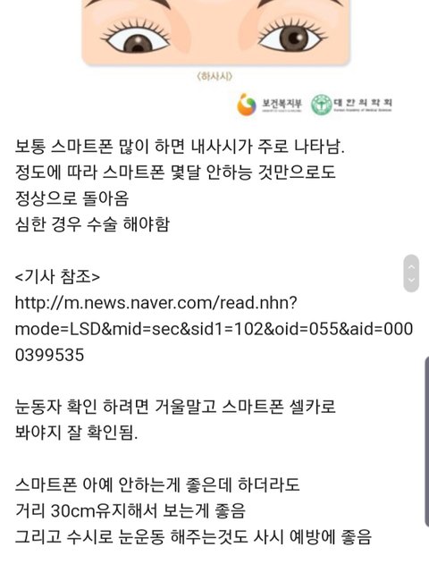 스마트폰 많이하면 생기는 후천적 사시