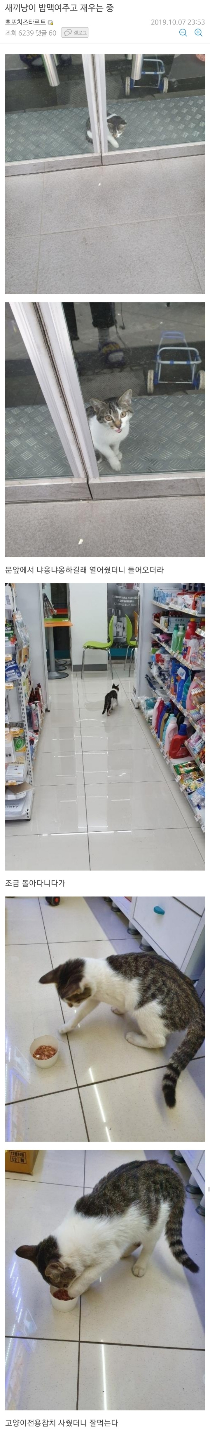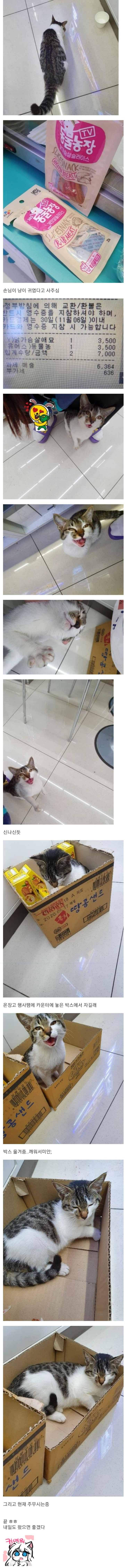 편의점에 쳐들어온 새끼냥이 밥맥여주고 재우는 중