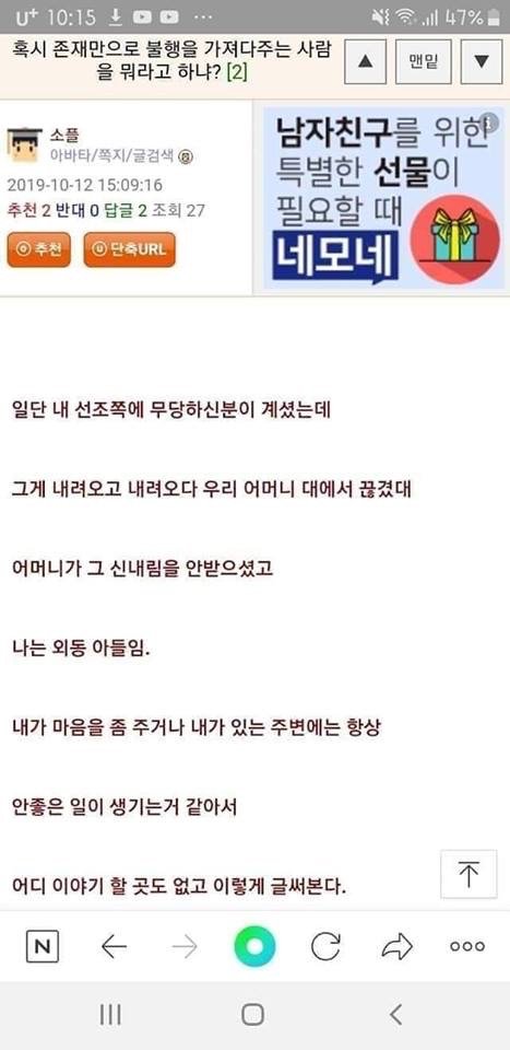 어떤 분이 2년전에 사주 하신거 보니깐 주변의 견재와 비난 등으로 단명 할수도 있음. 이라고 나왔더라 차라리 해외에서 살거나 이민 가면 더 잘풀릴 사주라고 그러던데 만약에 진리가 해외에 갔다면 남 눈치 보지 않고 행복하게 살수 있었을텐데란 생각 들고 괜히 더 마음 아프더라
