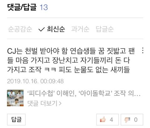 아이돌학교이해인 기사 다 바꾸고 댓글 싹 다 지우고 있다고