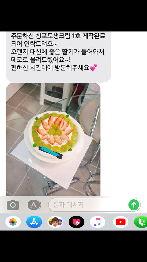 인터넷으로 열심히 알아보니 집 근처에 새로 생긴 디저트 카페가 마음에 들어 주문제작을 했고 17일인 어제, 찾으러 가기 직전 문자로 사진을 받았습니다.