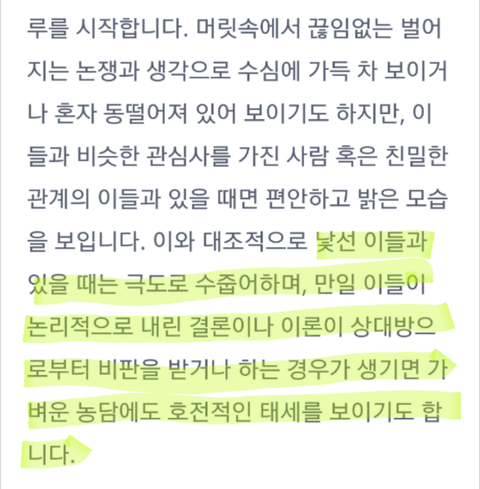 난 저런 친구가 오히려 더 좋은데? 오히려 논리적으로 설득하면 될 일이고 논리적으로 결정나지 않는 부분이라면 싸울일이 없는 부류임. 난 사회생활하면서 사회성 좋다는 사람들부터 경계함.