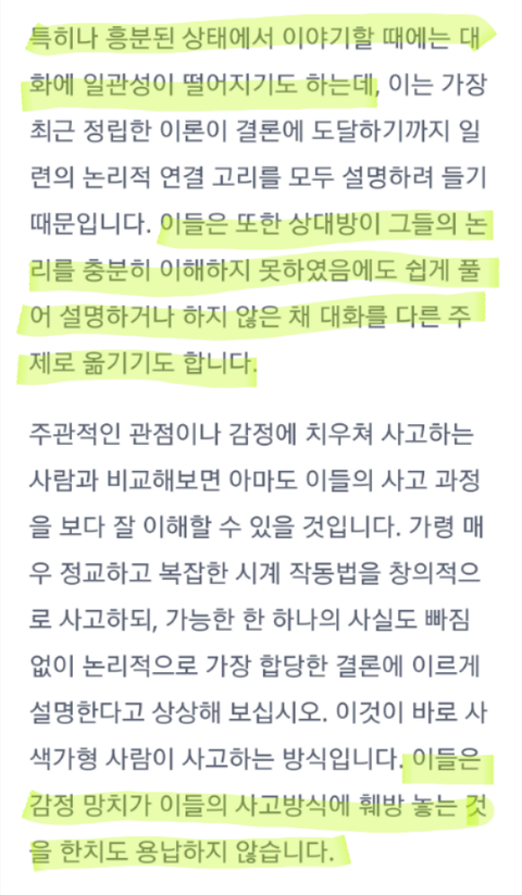 성격 자체가 비판,비난 하는거 좋아하고 트집잡고 되게 막말 잘함. 상대방을 대화의 상대로 여기지 않고 본인 감정, 논리 배설하는 용도로 생각함.