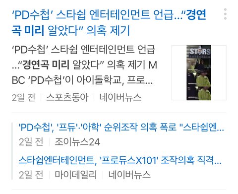 오늘 뜬 프로듀스101 시즌1 및 아이오아이 조작 관련 기사,