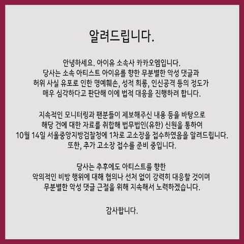 악플러 법적 대응 "14일 고소장 접수…협의·선처 無"
