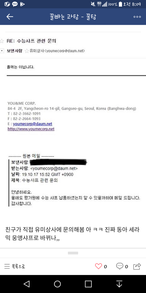 유미 상사측 메일