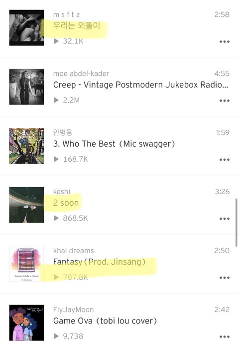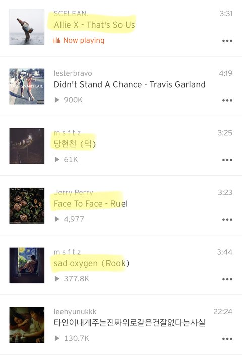 룰루 스토어에서 사운드 클라우드 앱 깔면 편하게 들을수 있음당 전글에서 추천받은것도 있단 색있는건 증말로 좋은것들이야 너네도 공유해~!~!