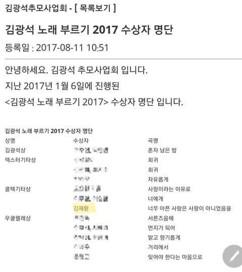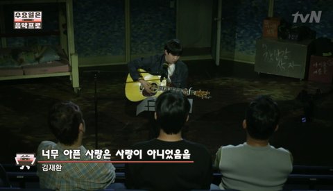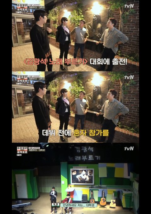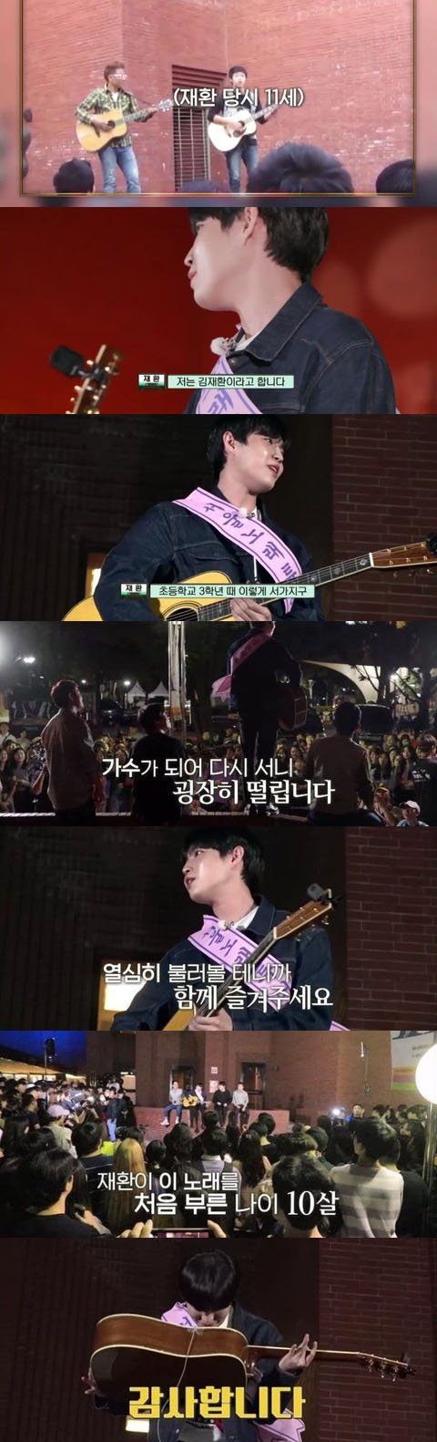 재환이는 데뷔전 이 자리에서 김광석 노래부르기 대회에 나간 적이 있어