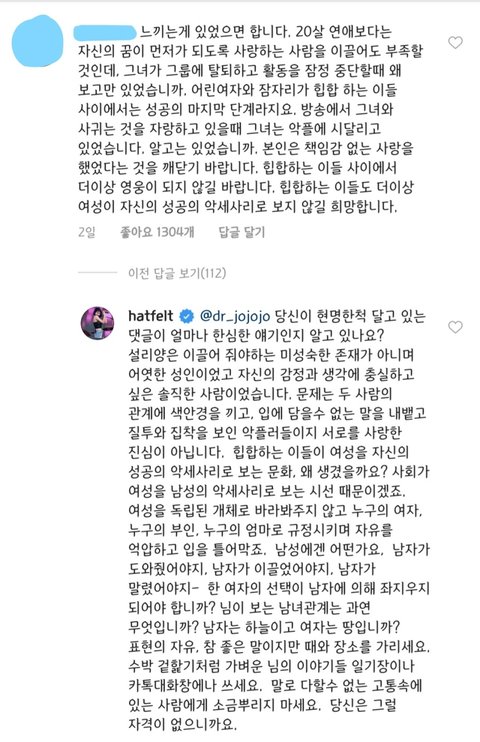 설리가 미성숙하지 않다고? 몸만 어른이면 다 어른인가? 설리는 보듬어 줘야 하고 애정어린 관심을 줘야하는 사람이었음. 최자가 욕을 먹는 이유?물론 최자를 욕해서는 안되지만 사람들이 저리도 까는 이유는 최자랑 사귄다고 열애설이 터지니깐 성희롱글이 기하급수적으로 불어남. 거기다가 사귀는 도중에 최자가 낸 곡이 19금 곡이었지. 딱 악플러들이 설리를 더 물고 헐뜯을 수 있겠끔 말이야. 서로 사랑한다고 하지만 애초에 생각이 있으면 어린 애랑 사귀는 게 말이 돼? 성인이라고 하지만.