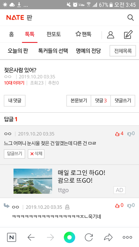 댓글 많은 톡