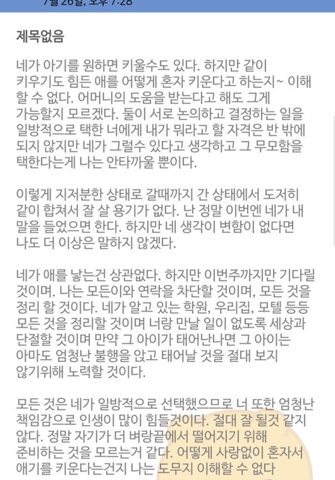 혼자라도 키우겠다는 저를 협박했다는 사실입니다.