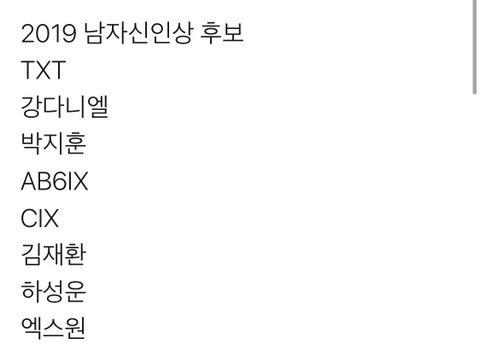 2019년 남자 신인상 후보
