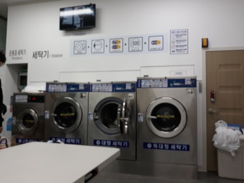 그런데 셀프 빨래방이 상가 오피스텔안에 있어서 오는 사람들은 정말 많고 많은데 건조대도 인구수에 비해 적고 공간도 협소하고, 세탁기가 작은거 1개,대형 2개, 특대형1개 이렇게 밖에 없습니다.