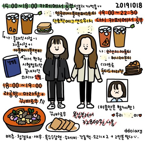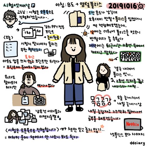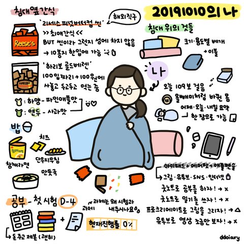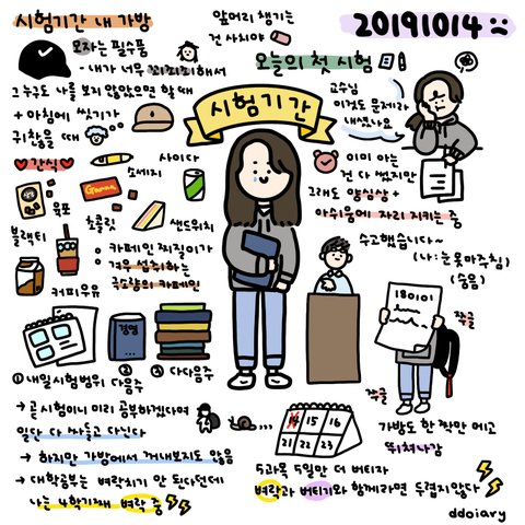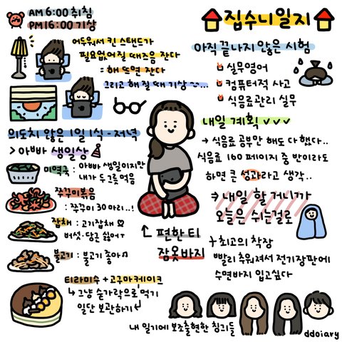 요즘은 글씨만 쓰는 일기보다는 이렇게 한 장 가득 그림일기를 쓰는 데에 맛들려서 1일 1그림일기 하려고 노력 중이에요!