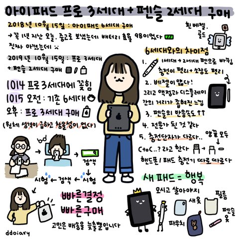아이패드6세대 > 아이패드 프로3세대로 넘어가고 그린 그림일기