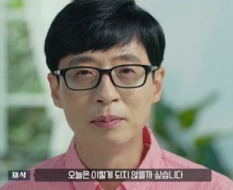 유재석이 카메라를 보면서