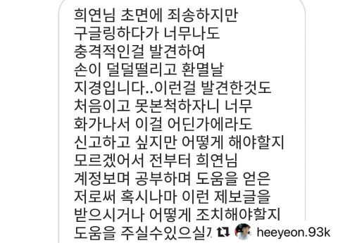 제가 피해자 본인이 아니며, 영상속 피해자와 아무 관련이 없으며,사이트로부터 올린 사람의 개인정보를 획득할 수가 없다 등등다양한 이유로 묵살당할 것을 너무도 잘 알고있기에섣불리 어떠한 행동을 하기가 힘드네요.