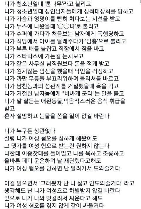 읽으면서 울뻔한 글이라 가져왔는데 문제가있다면 핃백