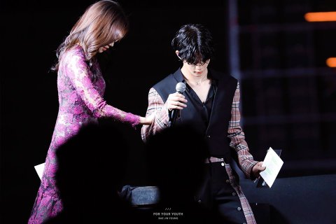 힐 신은 아나운서 분 내려오기 힘드니까 자기 팔 잡고 내려오시라고 에스코트 하능거