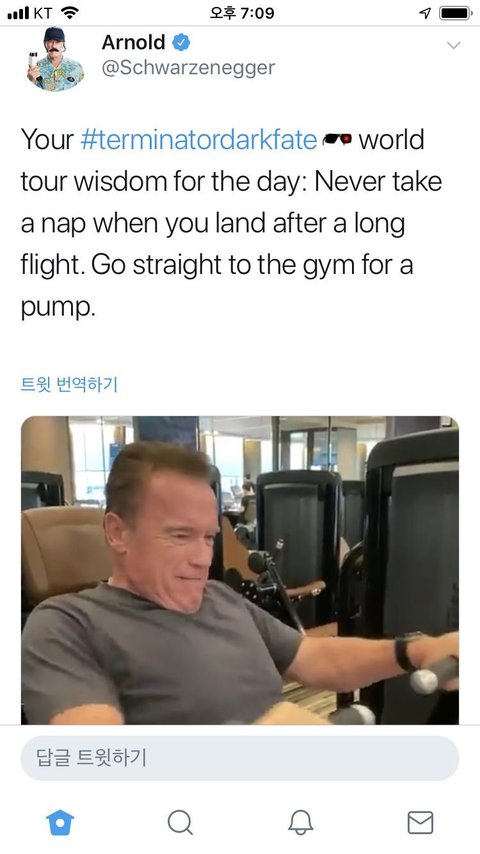 아놀드 슈왈제네거는 런던에서 장시간 비행을 하고