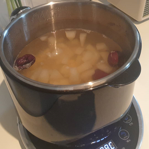신혼때 친정에서 챙겨온 약탕기를 이용해 몸에 좋은 약재 잔뜩 넣고 '차'기능만 눌러놓으면손이 많이 가지 않아도 저절로 완성되는 건강약차.ㅎㅎㅎ배의 맛을 진하게 느끼고 싶다면 배+대추만으로도 맛있는 배숙을 만들 수 있음.