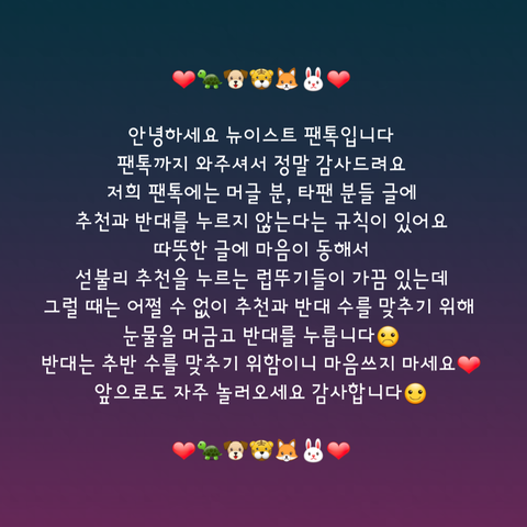 공지사항이나 뉴스 등 울 애들 직접 관련된 글, 노출이 필요한 글, 노동에 도움되는 글에만 추천 누르는 게 좋아용