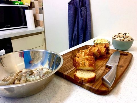 1. 저번 빠에야 때처럼 새우는 칼 안쪽에서 끝쪽으로 배를 그어준다는 느낌으로 칼집을 내주고