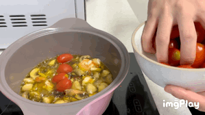 마지막에 넣어주면 토마토의 색감 덕분에 음식도 더 먹음직스러워 보이고