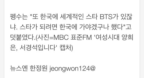 http://m.newsen.com/news_view.php?uid=201910230826266210 열심히 하셔서 방탄 선배님과 무대에서 어깨 나란히 하시는 날 오시길 화이팅