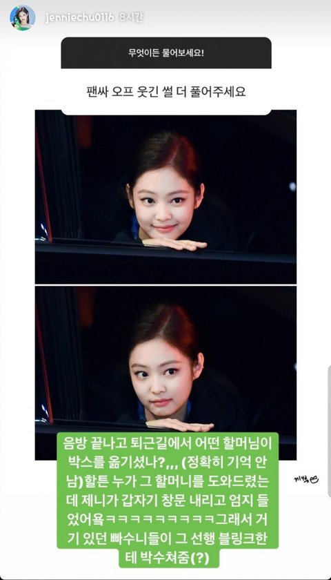 제니 홈마, 제니 관련 일화 인스타에 폭로