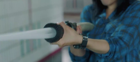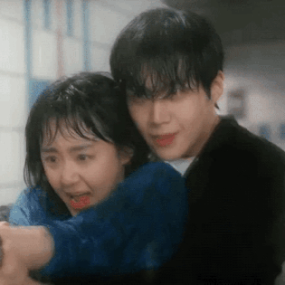 수압으로 인해 뒤로 넘어질 뻔한 여주를 뒤에서 잡아주는데..........