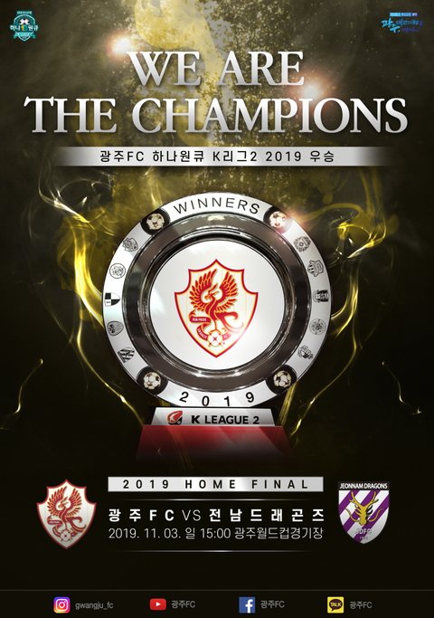 2019 K리그2 우승컵을 손에 쥔 광주FC!