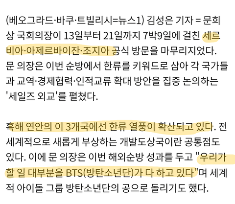 문화의 힘이 얼마나 큰 지 보여주는 대표적인 케이스라고 볼 수 있지. 해외 교민들은 정말 몸으로 느끼고 BTS한테 고마워 함. 자랑스럽다.
