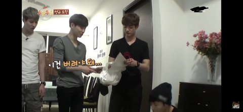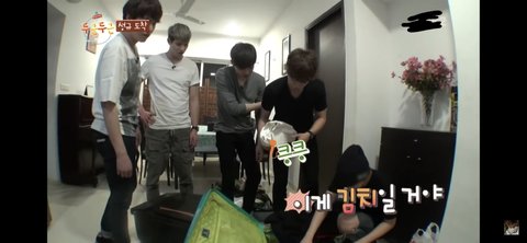 두근두근 인도라는 프로그램에서 멤버들이 모여서 성규 캐리어 확인하는 장면이 있었는데 성규가 이게 김치일 거야 이랬더니 민호가 건네받으면서 아우 쉰냄새 이랬는데 옆에있던수호가 이건 버려야돼 버려야돼 이랬는데 그거 알고보니까 신발이었던거ㅋㅋㅋㅋ조카웃김ㅠㅠ이거 영상으로 봐야됨 그리고 앞에 더웃긴건 인도오는데 굳이 3분카레싸옴ㅋㅋㅋ