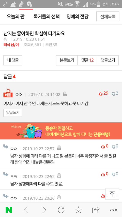 댓글 많은 톡