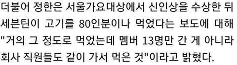 세븐틴 멤버들끼리 가면 한 50인분 먹는다고 했던거 가틈