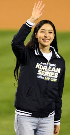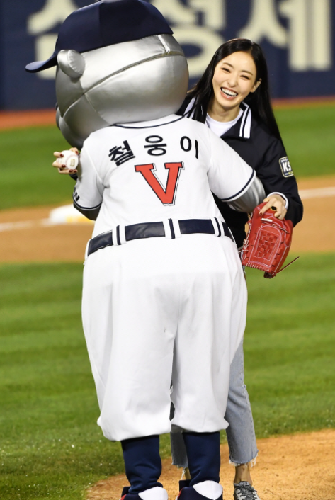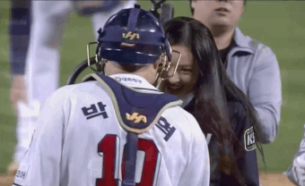 그렇게 시구를 마치고 포수한테서 공을 받는 이다희