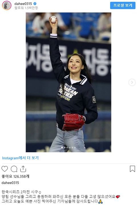 경기 후, 자신의 SNS에 시구 사진이랑 글 올린 이다희