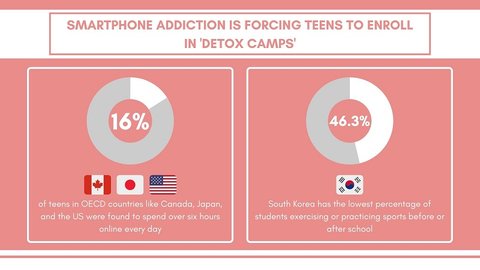 스마트폰에 의존하는 시간이 점점 더 길어지는 청소년들을 위해 디톡스 캠프가 만들어졌다. 퓨리서치센터의 조사에 따르면 우리나라는 스마트폰 보급률이 가장 높아 성인의 95%가 스마트폰을 갖고 있다.