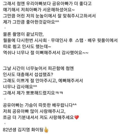 글도 보면 촬영장에서 엄청 챙겨주고, 선물도 자주 주고 그랬나봐 ㅠㅠ