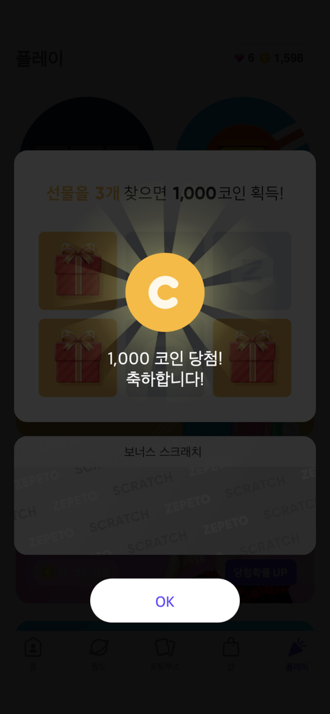 당첨 안되겠지 했는데 1000코인 당첨됨