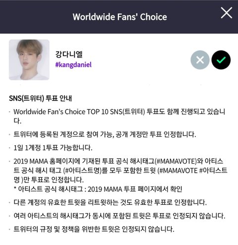 ▪️해시태그 #MAMAVOTE #kangdaniel 두개를 포함한 트윗만 투표로 인정